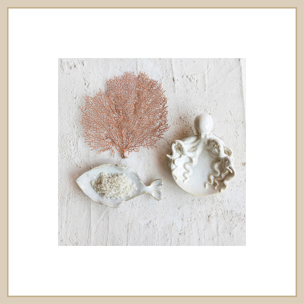Dive into coastal charm with this beautifully crafted stoneware octopus dish. Perfect as a catchall for jewelry, keys, or small treasures—or as a serving dish for coastal-themed entertaining—it brings a whimsical, nautical touch to any space. A unique statement piece for ocean lovers and collectors alike.